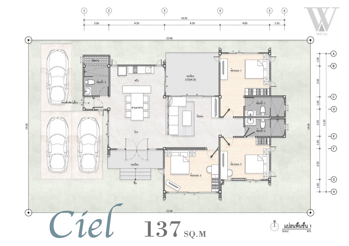 3 ห้องนอน | 3 ห้องน้ำ | พื้นที่ใช้สอย 137 ตร.ม.