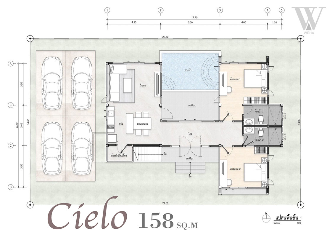 2 ห้องนอน | 2 ห้องน้ำ | พื้นที่ใช้สอย 158 ตร.ม.